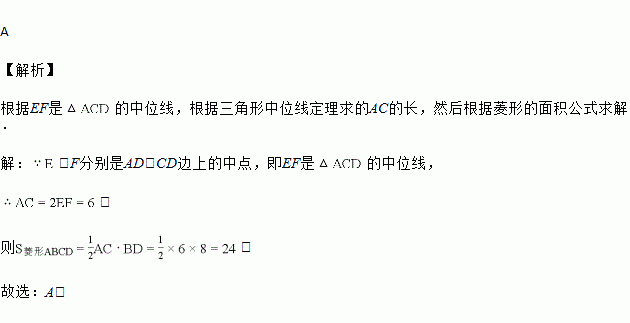 如图,菱形ABCD的对角线AC、BD交于点O,E、F分别是AD、CD边的中点,连接EF,若,,则菱形ABCD的面积是