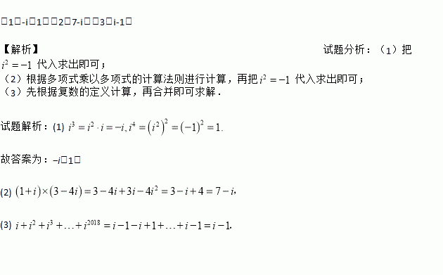 (3)计算:i+i2+i3+…+i2018.