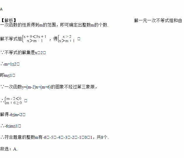 若关于x的不等组的解集是x>2,且一次函数y=(m-2)x+(m+6)的图象不经过第三象限,则符合题意的整数m的个数为( )