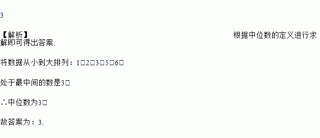 一组数据:2,5,3,1,6,则这组数据的中位数是________.