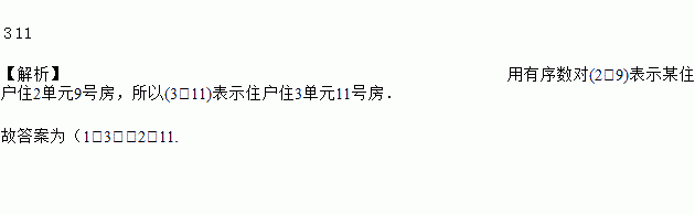 用有序数对(2,9)表示某住户住2单元9号房,请问(3,11)表示住户住________单元_____号房.