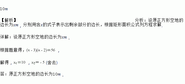 公园原有一块正方形空地,后来从这块空地上划出部分区域栽种鲜花(阴影部分),原空地一边减少了3m,另一边减少了2m,剩余空地面积为56m2,求原正方形空地的边长.