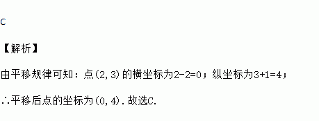 在平面直角坐标系中,将点(2,3)向上平移1个单位,再向左平移2个单位,所得到的点的坐标是( )
