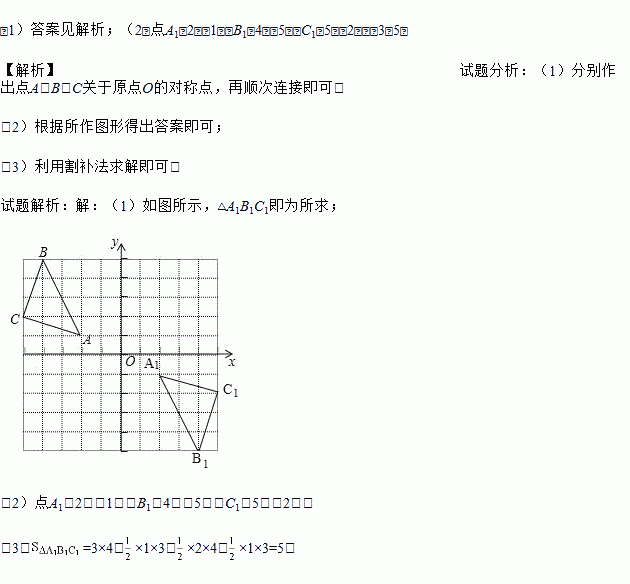 (1)画出△ABC关于原点O成中心对称的△A1B1C1;