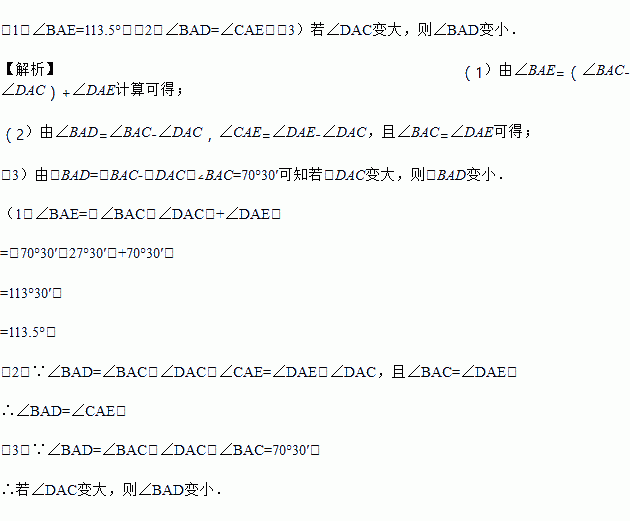 (1)如果∠DAC=27°30′,那么∠BAE等于多少度?(写出过程)