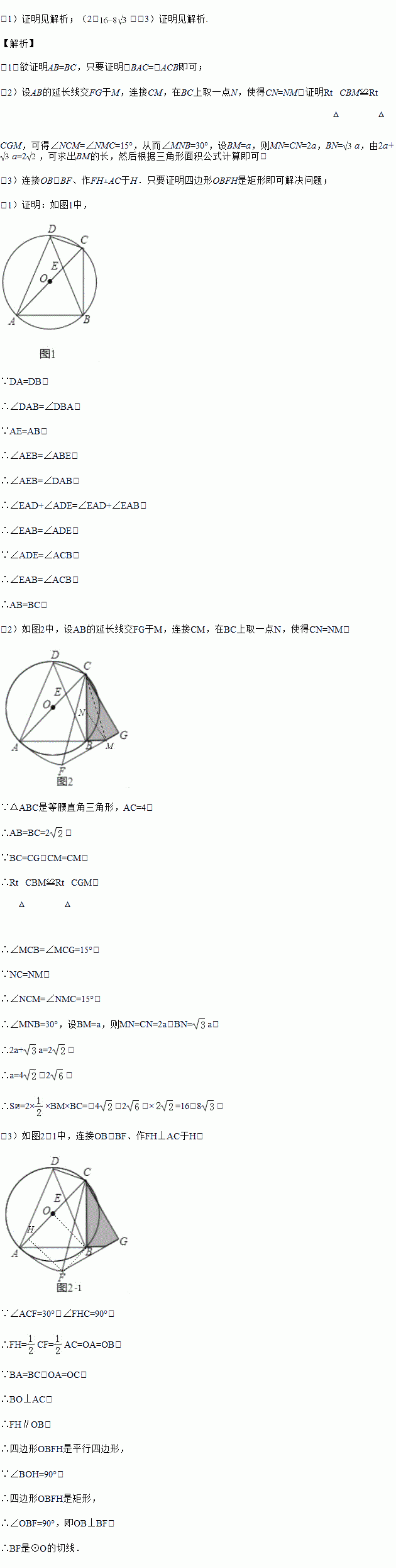 (3)在(2)的条件下,连接FB,求证:FB为⊙O的切线.