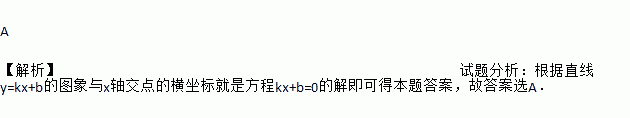 A 【解析】试题分析:根据直线y=kx+b的图象与x轴交点的横坐标就是方程kx+b=0的解即可得本题答案,故答案选A.