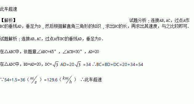 如图,高速公路BC(公路视为直线)的最高限速为120