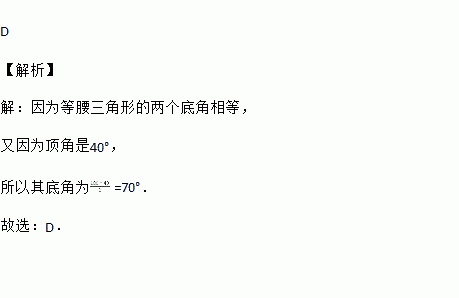 若等腰三角形的顶角为40°,则它的底角度数为( )