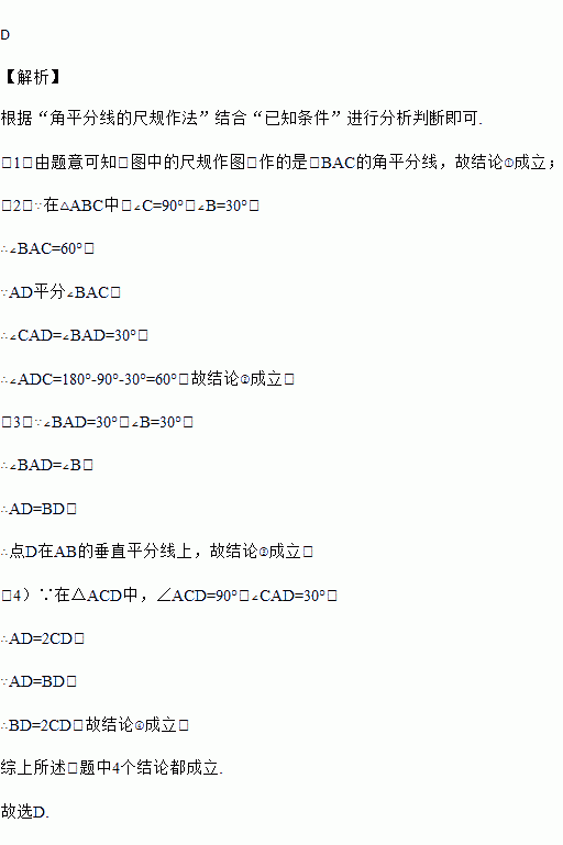 ①AD是∠BAC的平分线; ②∠ADC=60°;