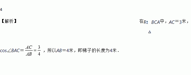 如图所示,一架梯子斜靠在墙上,若梯子底端到墙的距离AC=3米,cos∠BAC=