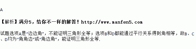 如图,E,B,F,C四点在一条直线上,EB=CF,∠A=∠D,再添一个条件仍不能证明△ABC≌△DEF的是( )
