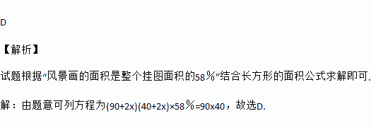 在一幅长90cm,宽40cm的风景画的四周的外边镶宽度相同的金色纸边,制成一幅挂图,使风景画的面积是整个挂图面积的58%,设金色纸边的宽度为xcm,则可列方程为( )
