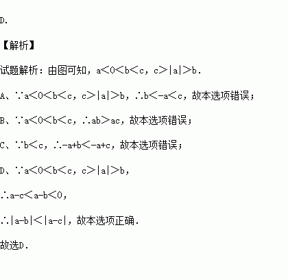 A.-a<b<c B.ab<ac C.-a+b>-a+c D.|a-b|<|a-c|