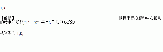 四个直立在地面上的字母广告牌在不同情况下,在地面上的投影(阴影部分)效果如图,则在字母“L”、“K”、“C”的投影中,与字母“N”属同一种投影的有________ .