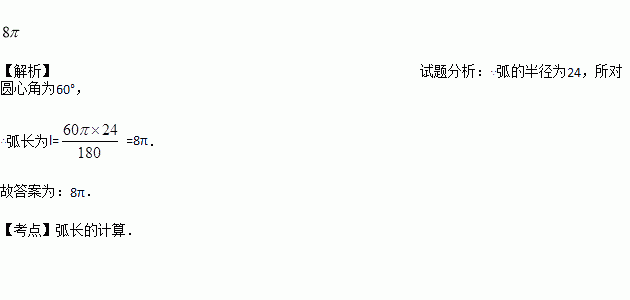 弧的半径为24,所对圆心角为60°,则弧长为__.