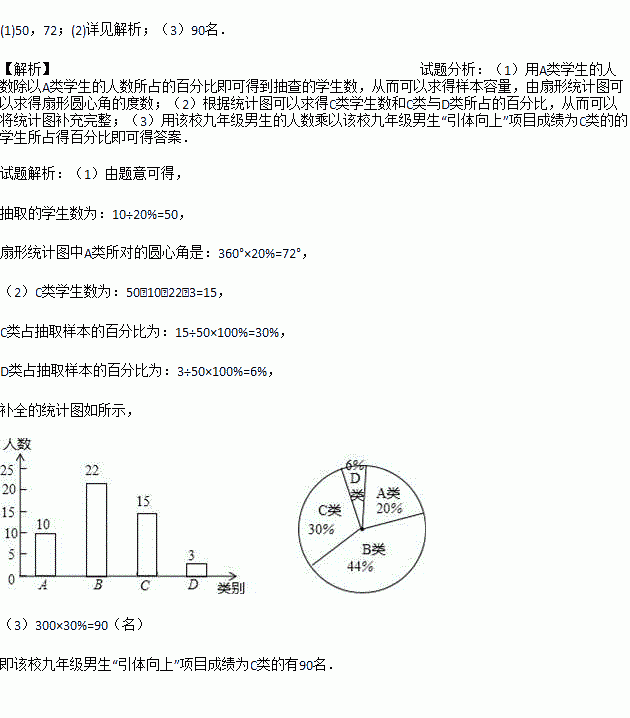 (3)若该校九年级男生有300名,请估计该校九年级男生“引体向上”项目成绩为C类的有多少名?