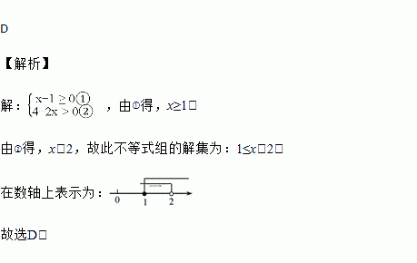 不等式组的解集在数轴上表示为( )