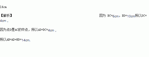 如图,点C、D是线段AB上两点,D是AC的中点,若BC=6cm,BD=10cm,求线段AB的长度.