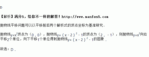 抛物线y=(x﹣2)2﹣1可以由抛物线y=x2平移而得到,下列平移正确的是( )