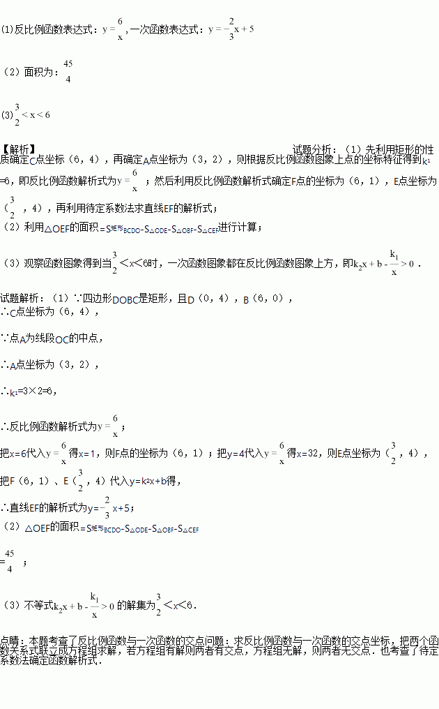 >0)的图象经过线段OC的中点A(3,2),交DC于点E,交BC于点F.设直线EF的解析式为