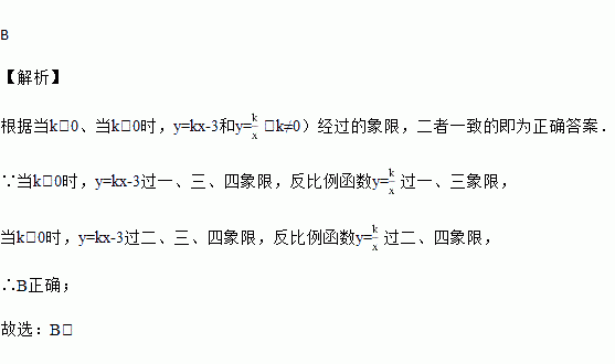 函数y=kx﹣3与y=(k≠0)在同一坐标系内的图象可能是( )