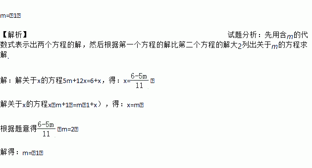 当m为何值时,关于x的方程5m+12x=6+x的解比关于x的方程x(m+1)=m(1+x)的解大2.