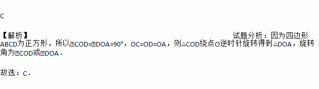 如图,ABCD为正方形,O为对角线AC,BD的交点,则△COD绕点O经过下列哪种旋转可以得到△DOA( )
