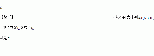 某校“环保小组”的5名同学在一次活动中捡废弃塑料袋的个数分别是:4,6,8,6,10,这组数据的中位数,众数分别为( )