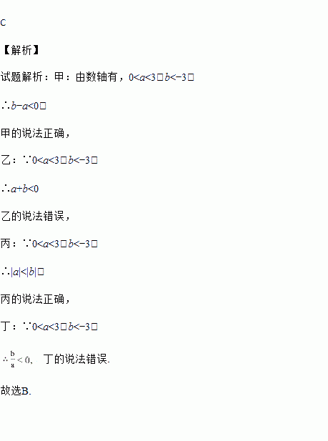 甲:b-a<0;乙:a+b>0;丙:|a|<|b|;丁:>0 。其中正确的是(  )