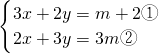 ①+②得,5(x+y)=4m+2,解得x+y=