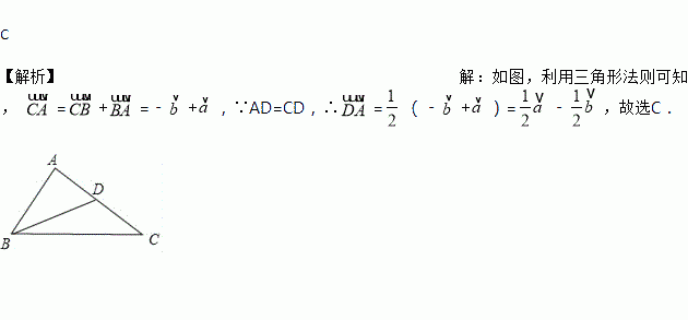 已知在△ABC中,D是边AC的中点, , ,那么等于( )