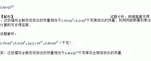 1千克镭完全蜕变后,放出的热量相当于3.75×105千克煤完全燃烧放出的热量,据估计地壳里含9.2×109千克镭,试问这些镭完全蜕变后放出的热量相当于多少千克煤完全燃烧放出的热量?