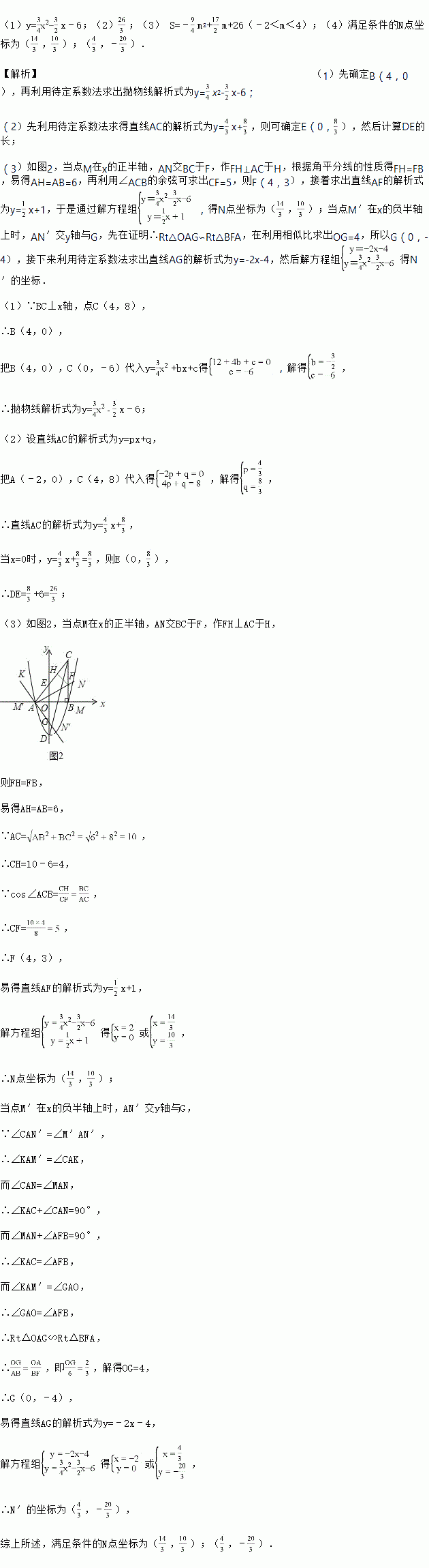 (3)若点 M 是 x 轴上一点(不与点 A 重合),抛物线上是否存在点 N,使∠CAN=∠MAN.若存在,请直接写出点 N 的坐标;若不存在,请说明理由.