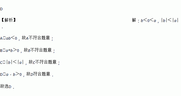 A. ab>0 B. a+b<0 C. < D. a-b>0