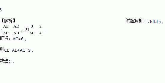 如图,已知l3∥l4∥l5,它们依次交直线l1、l2于点E、A、C和点D、A、B,如果AD=2,AE=3,AB=4,那么CE=( )