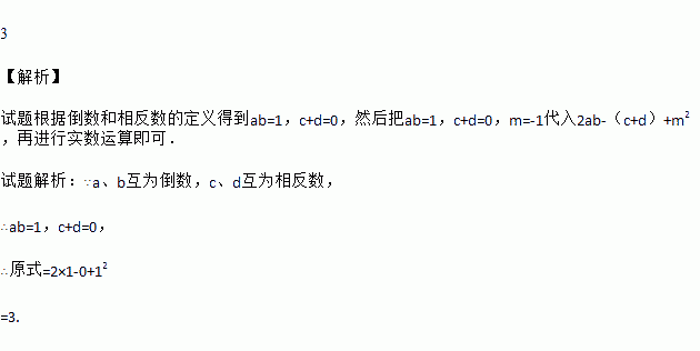 如果a、b互为倒数,c、d互为相反数,且m=-1,则代数式2ab-(c+d)+m2=________;