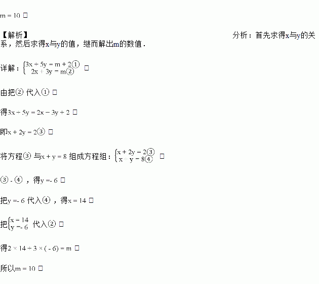 已知方程组的解适合,求m的值.