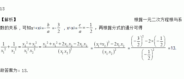 方程2x2+3x-1=0的两个根为x1,x2,则=_____.