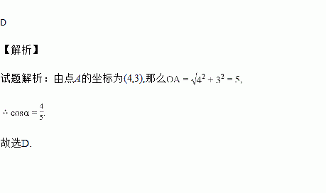 如图,在平面直角坐标系中,点A的坐标为(4,3),那么cosα的值是( )