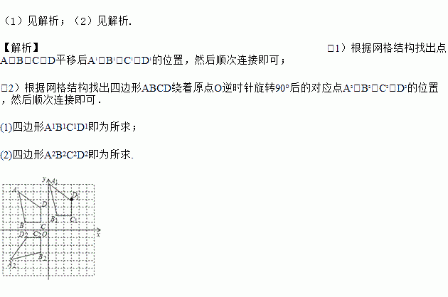 (2)画出四边形ABCD绕着原点O逆时针旋转90°后的四边形A2B2C2D2.