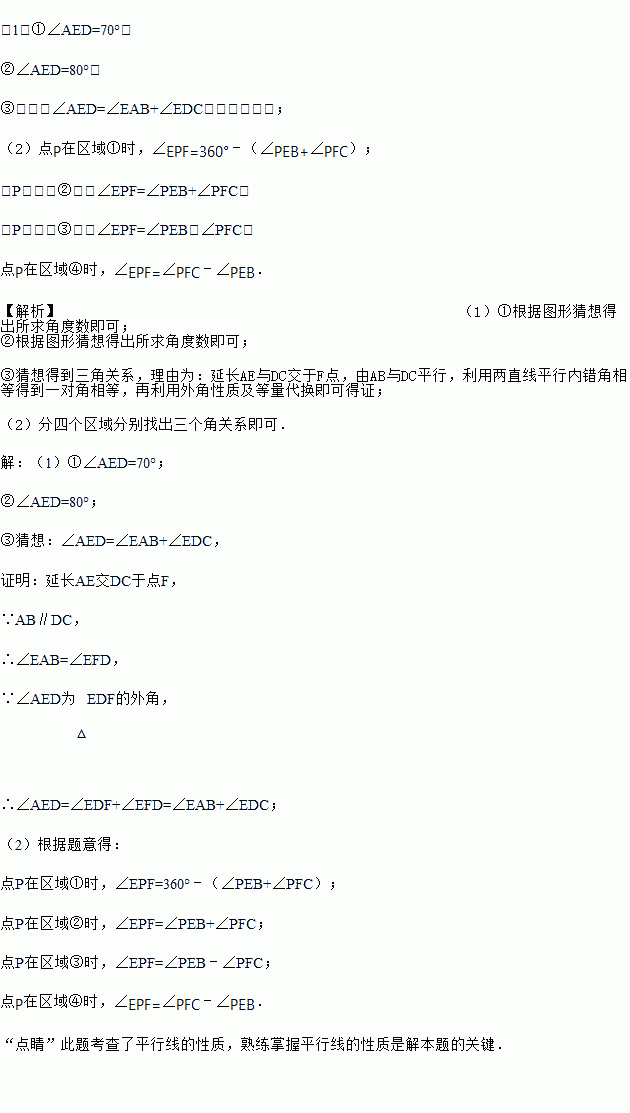 ③在图(1)中∠AED、∠EAB、∠EDC有什么数量关系,并证明你的结论.