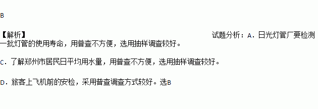 A. 日光灯管厂要检测一批灯管的使用寿命,采用普查方式