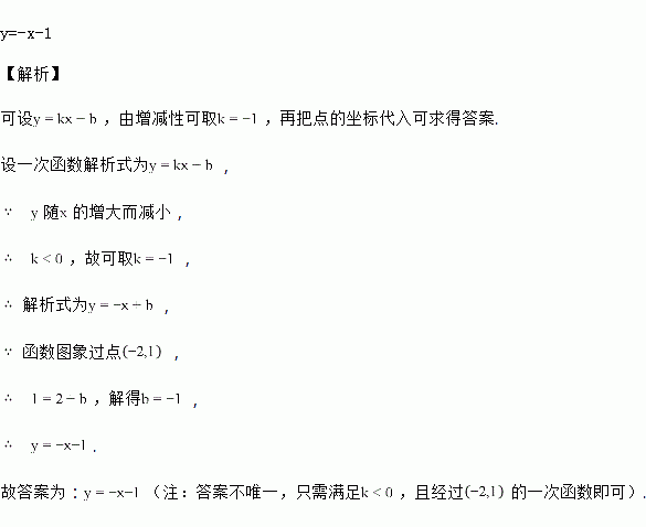 写出一个经过点,且y随x的增大而减小的一次函数的关系式:______.