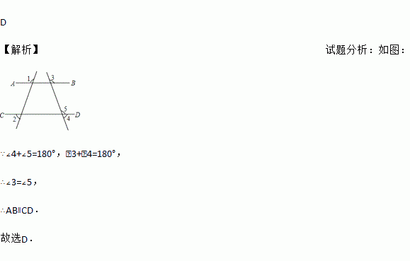 C. ∠1+∠3=180o D. ∠3+∠4=180o