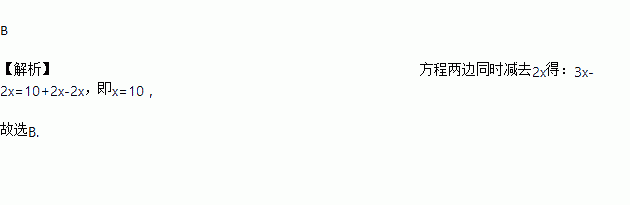 利用等式的性质1,将等式3x=10+2x进行变形,正确的是( )