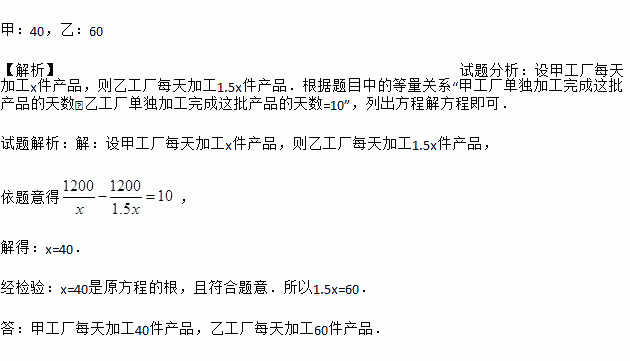 信息一:甲工厂单独加工完成这批产品比乙工厂单独加工完成这批产品多用10天;