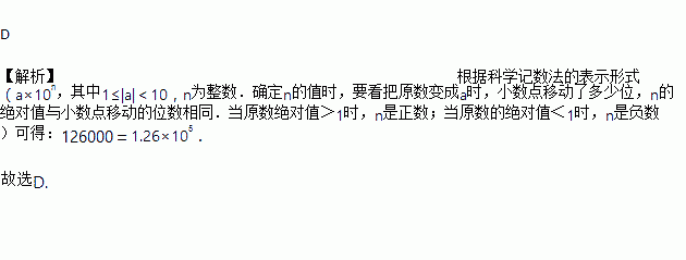 A. 1.26×106 B. 12.6×104 C. 0.126×106 D. 1.26×105