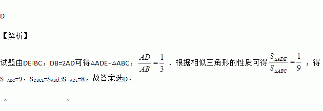 如图,在△ABC中,DE∥BC,DB=2AD,△ADE的面积为1,则四边形DBCE的面积为( )