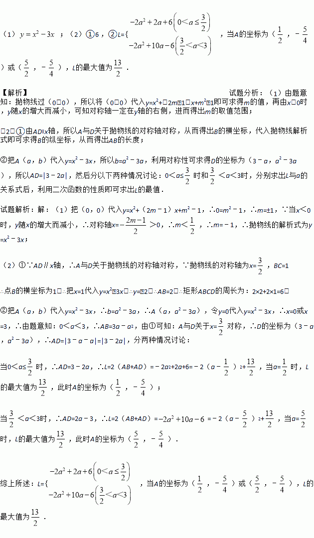 ②设动点A的坐标为(a, b),将矩形ABCD的周长L表示为a的函数,并写出自变量的取值范围,判断周长是否存在最大值,如果存在,求出这个最大值,并求出此时点A的坐标;如果不存在,请说明理由.